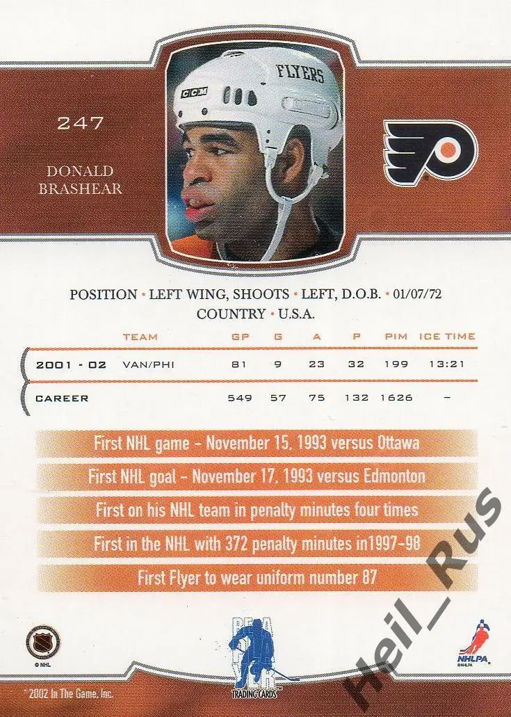 Карточка Donald Brashear/Дональд Брашир Philadelphia Flyers/Филадельфия НХЛ/NHL