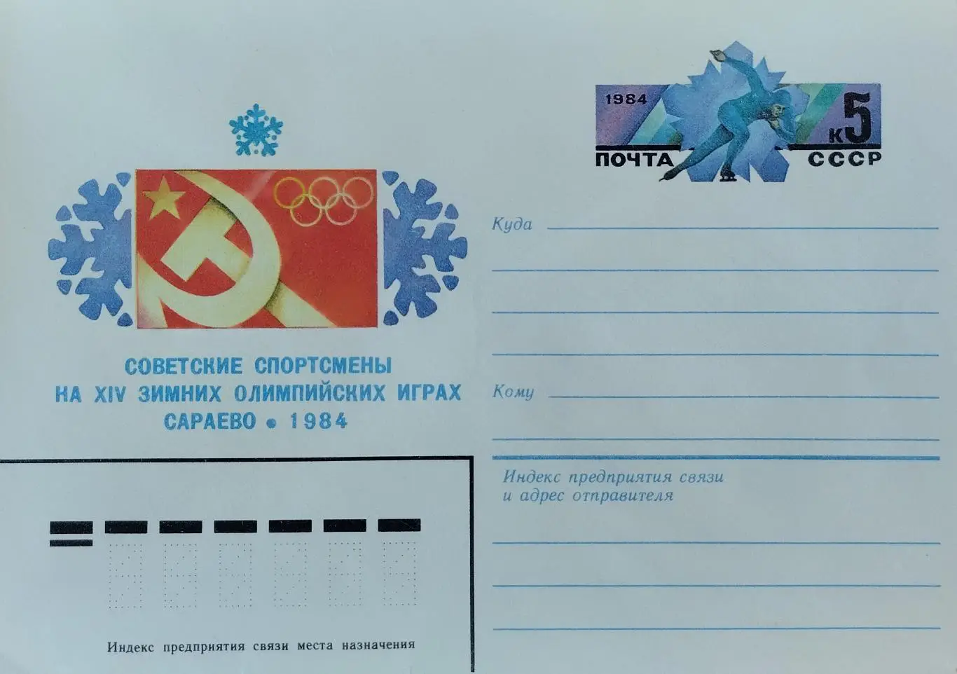 Конверт. Советские спортсмены на зимних Олимпийских играх. Сараево 1984.