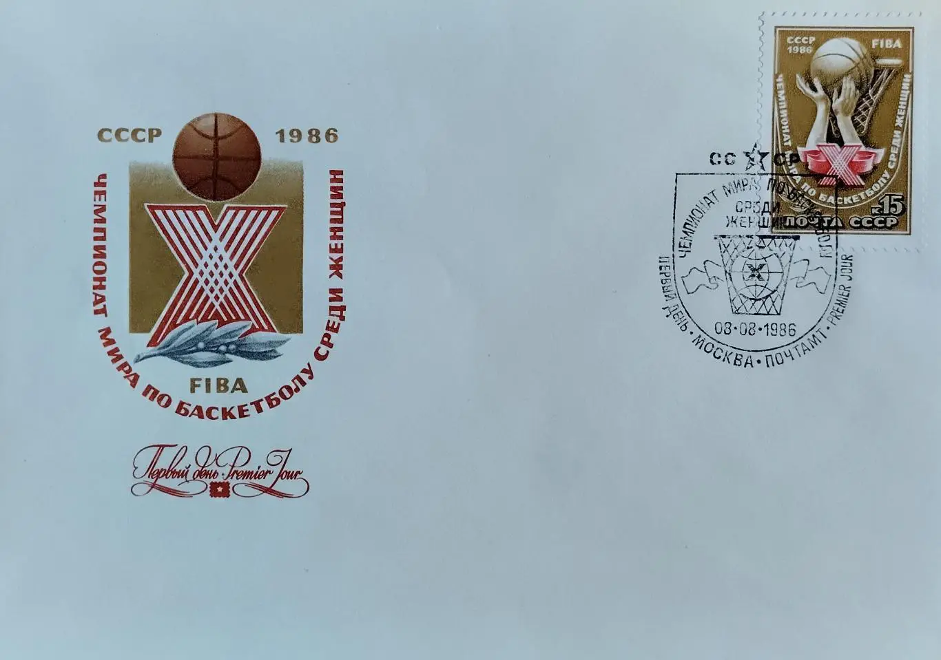 КПД с маркой. Чемпионат мира по баскетболу среди женщин. СССР 1986.