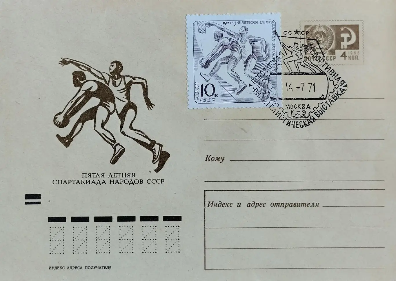 Конверт. V летняя спартакиада народов СССР. 1971.