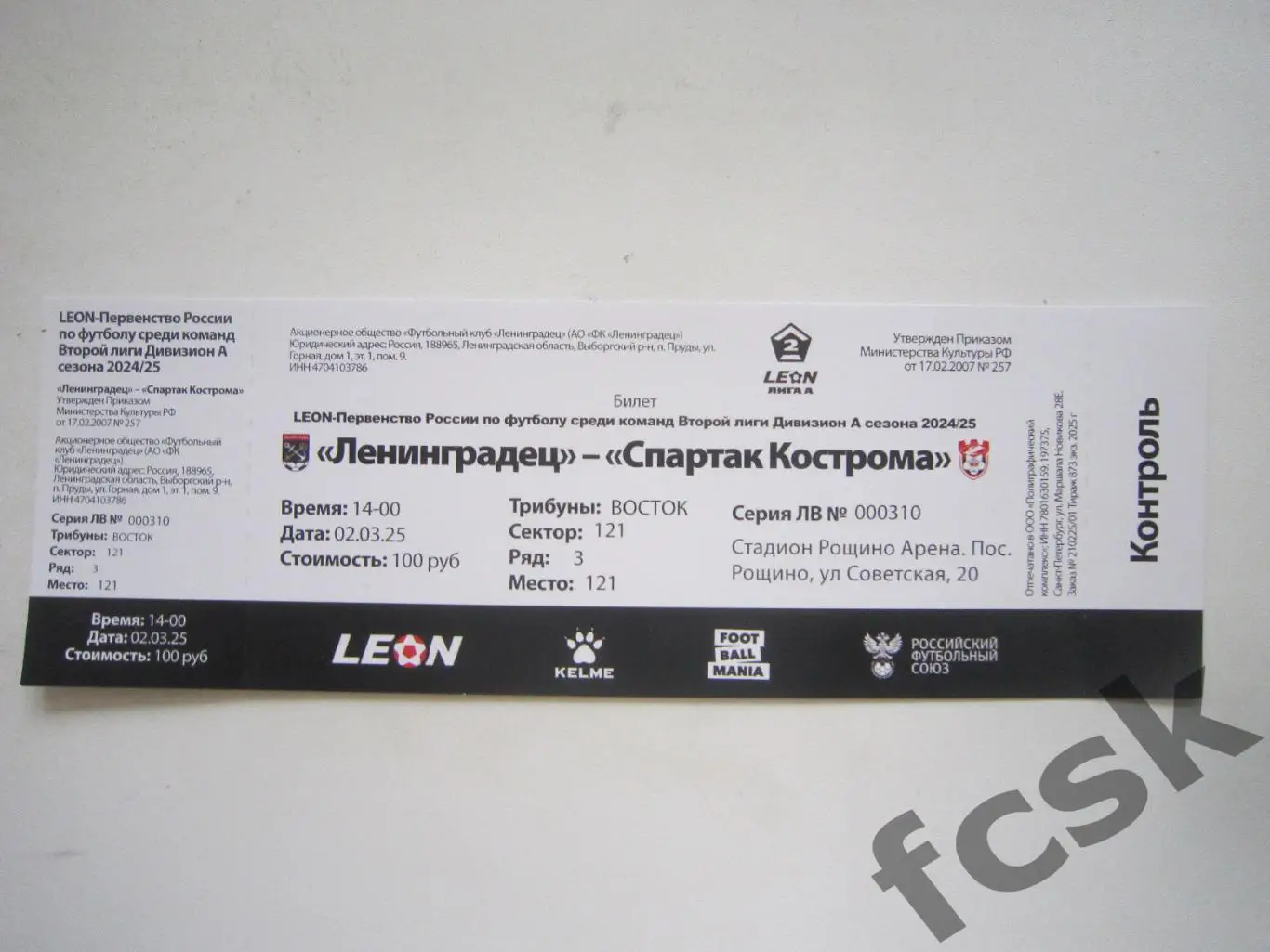 Ленинградец Ленинградская обл. / СПб - Спартак Кострома 02.03.2025