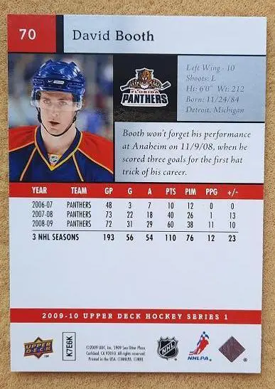 карточка хоккей НХЛ Дэвид Бут Флорида Пантерз Владивосток Омск Минск № 70 выпуск 2009-10