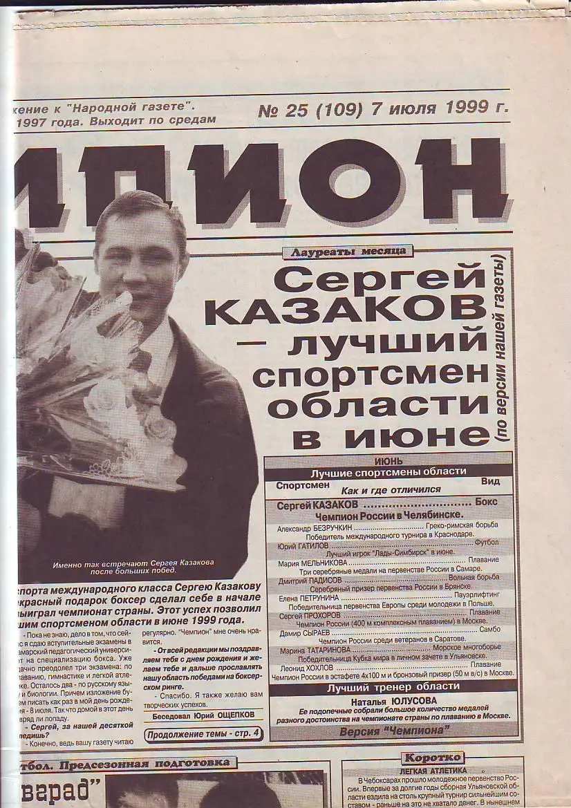 Очень интересная и обзорная спортивная газета Ульяновской области.