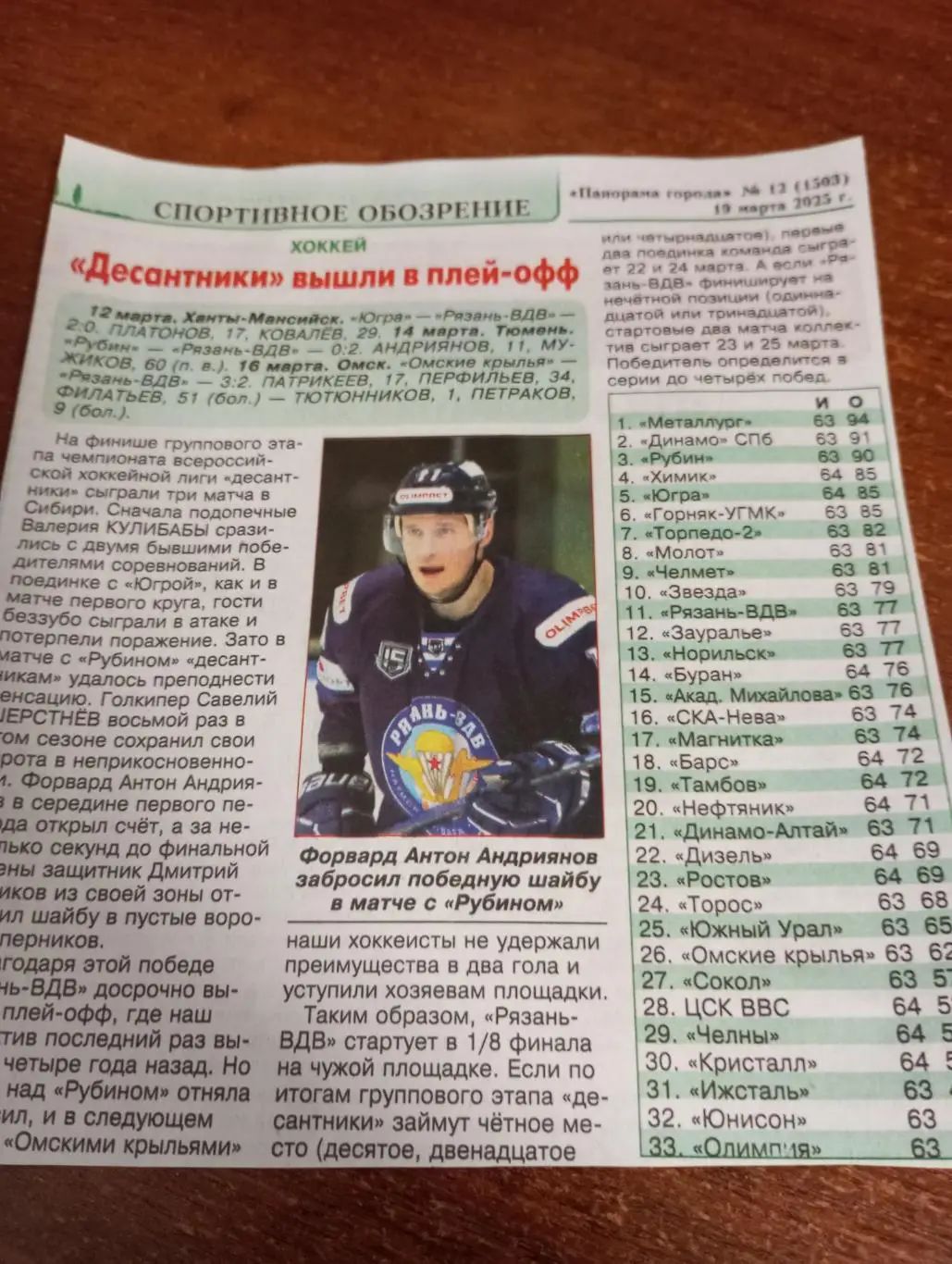 ХК. Рязань ВДВ -Ханты-Мансийск/Тюмень/Омск.12/14/16.03.2025. Счёт0-2 2-0