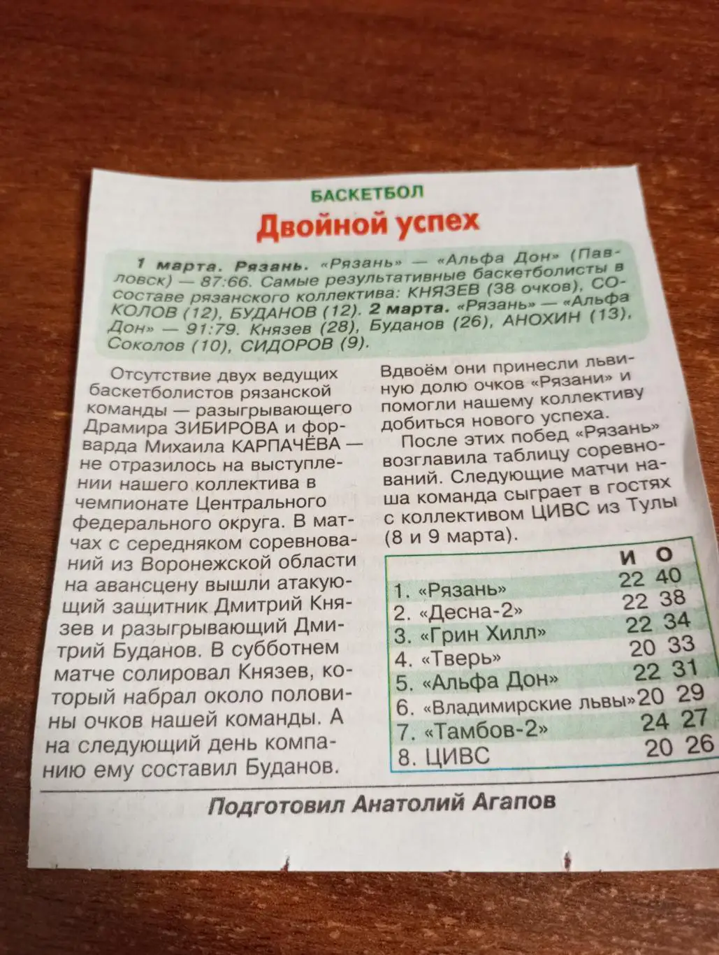 Вирізка з газети. Кубок СРСР. Фінали.м.