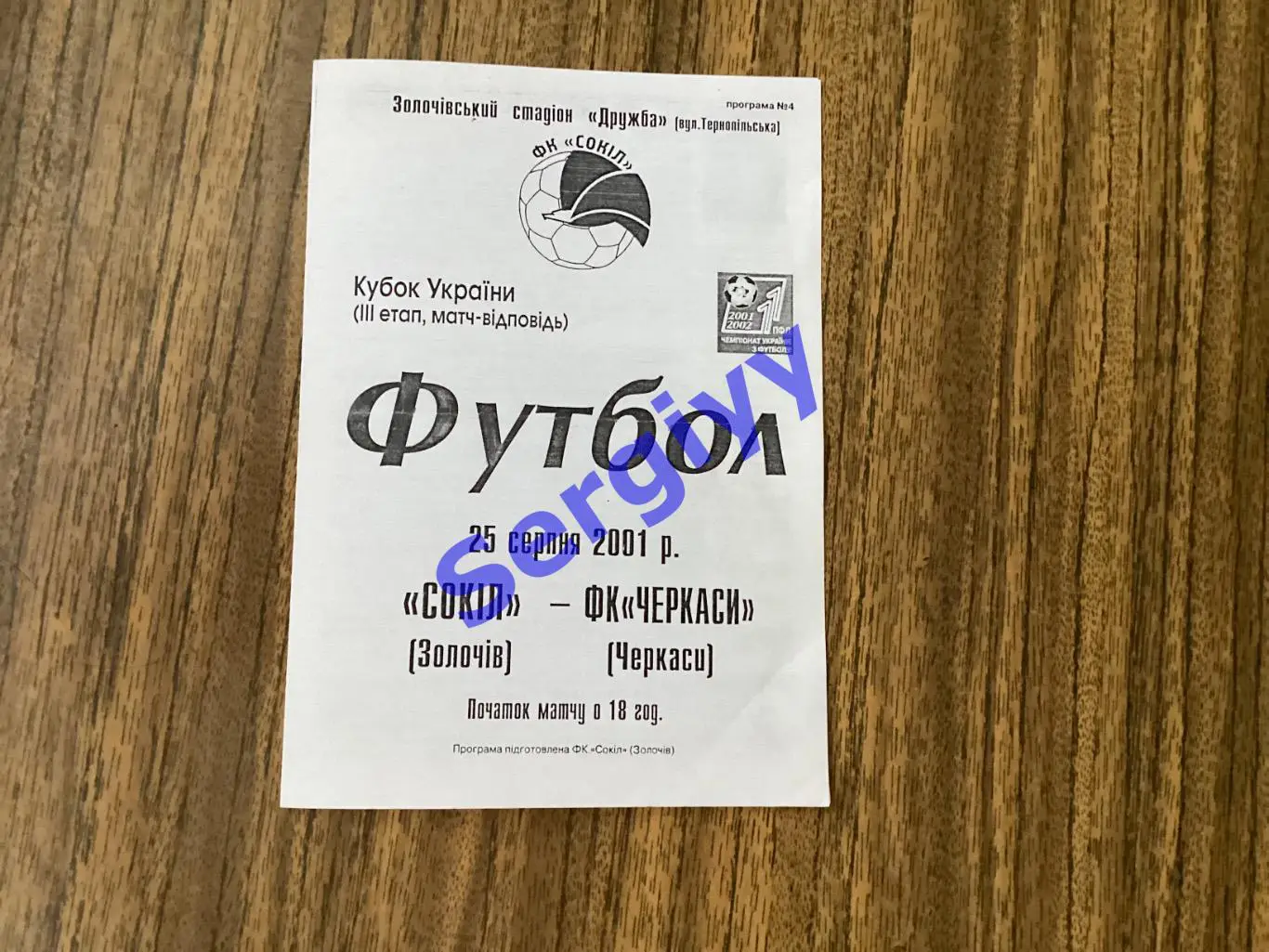 Сокіл Золочів-ФК Черкаси 25.08.2001 кубок України