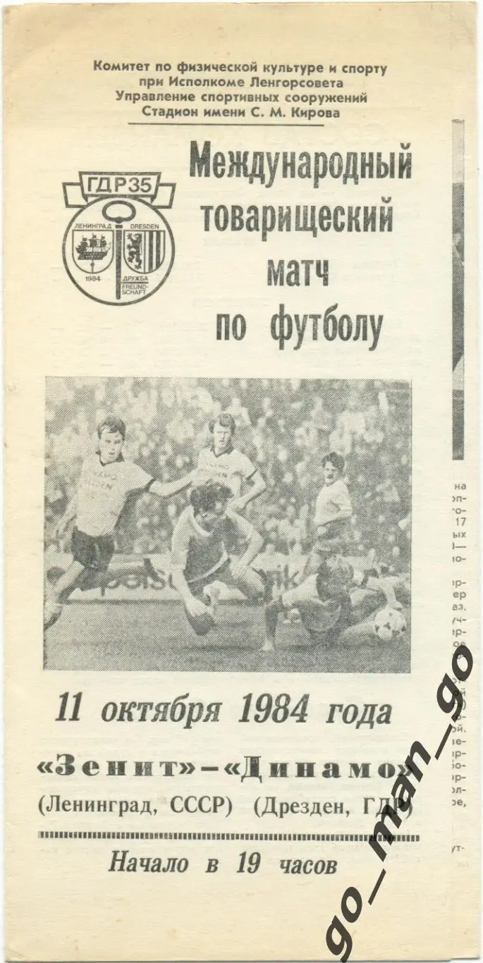 ЗЕНИТ Ленинград / Санкт-Петербург – ДИНАМО Дрезден 11.10.1984 товарищеский матч.