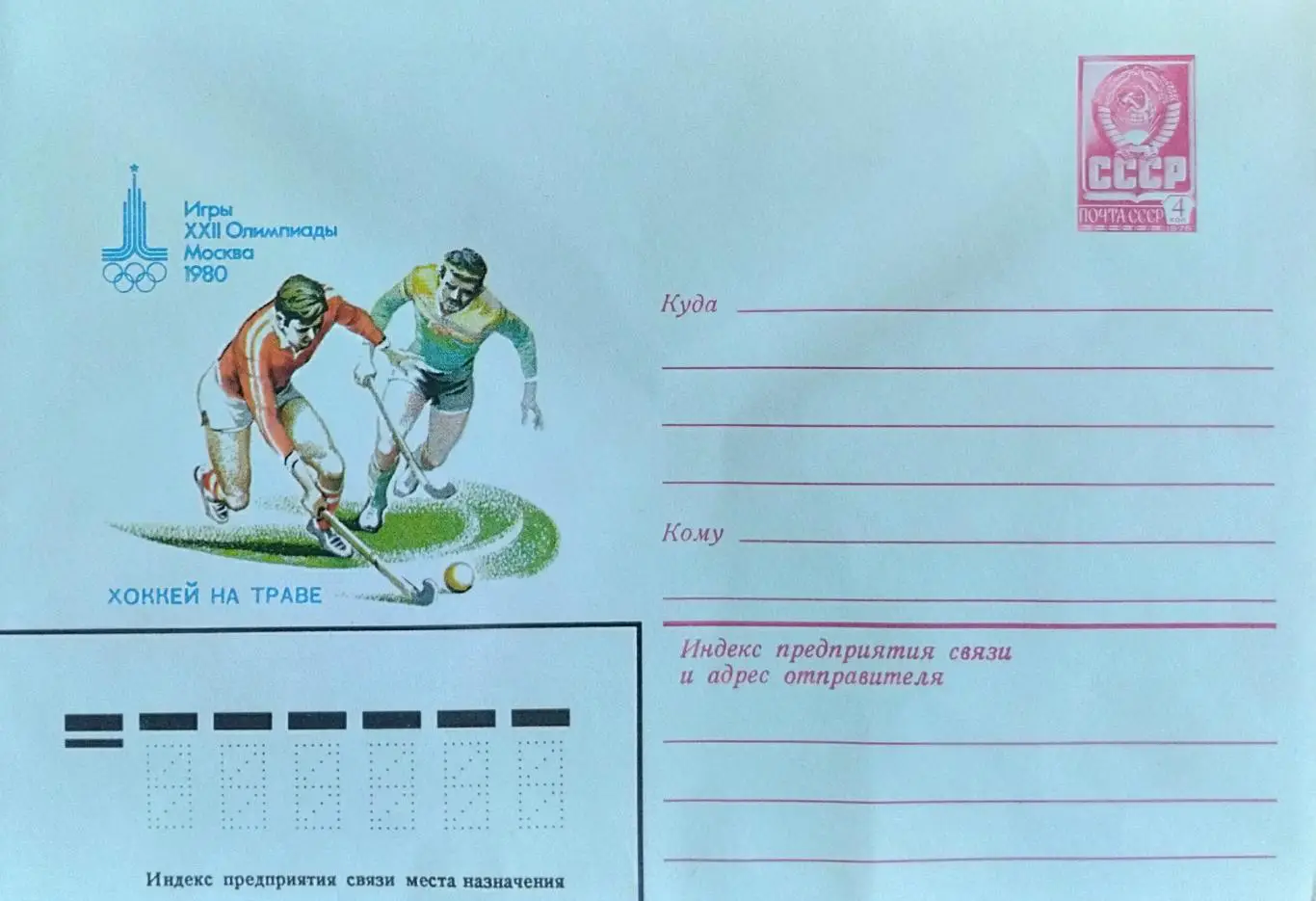 Конверт. Летние Олимпийские игры в Москве 1980. Хоккей на траве.