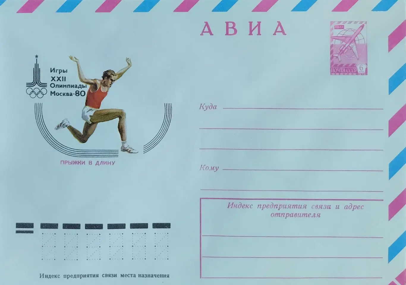 Конверт. Летние Олимпийские игры в Москве 1980. Прыжки в длину.