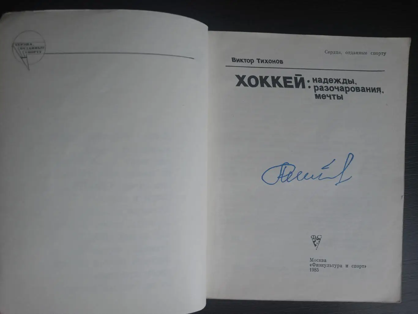 Книга Хоккей: надежды, разочарования, мечты с автографом Виктора ТихоноваКнига Хоккей: надежды, разочарования, мечты с автографом Виктора Тихонова 1