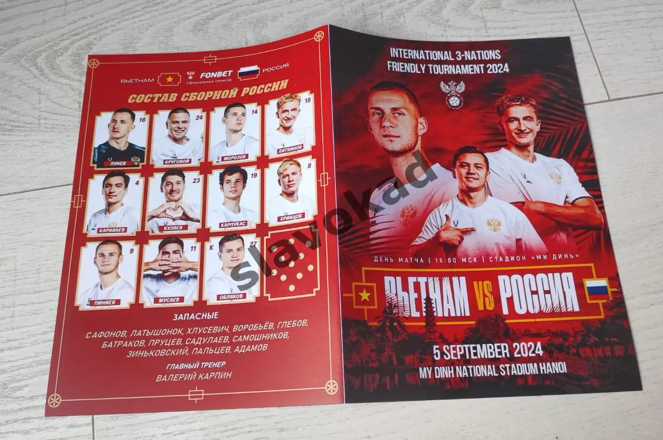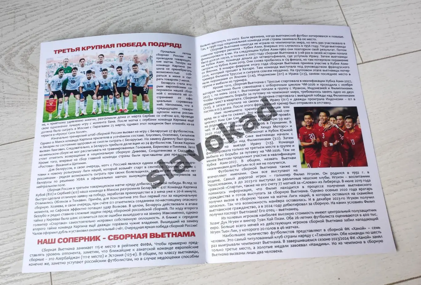 Неофициальная программа. Для изготовления использованы официальная обложка к матчу и состав сборной России.