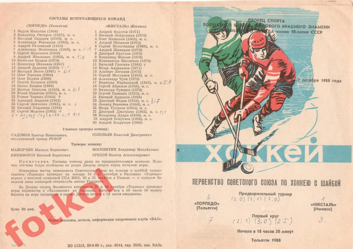 ТОРПЕДО Тольятти - ИЖСТАЛЬ Ижевск 06 - 07.10.1988