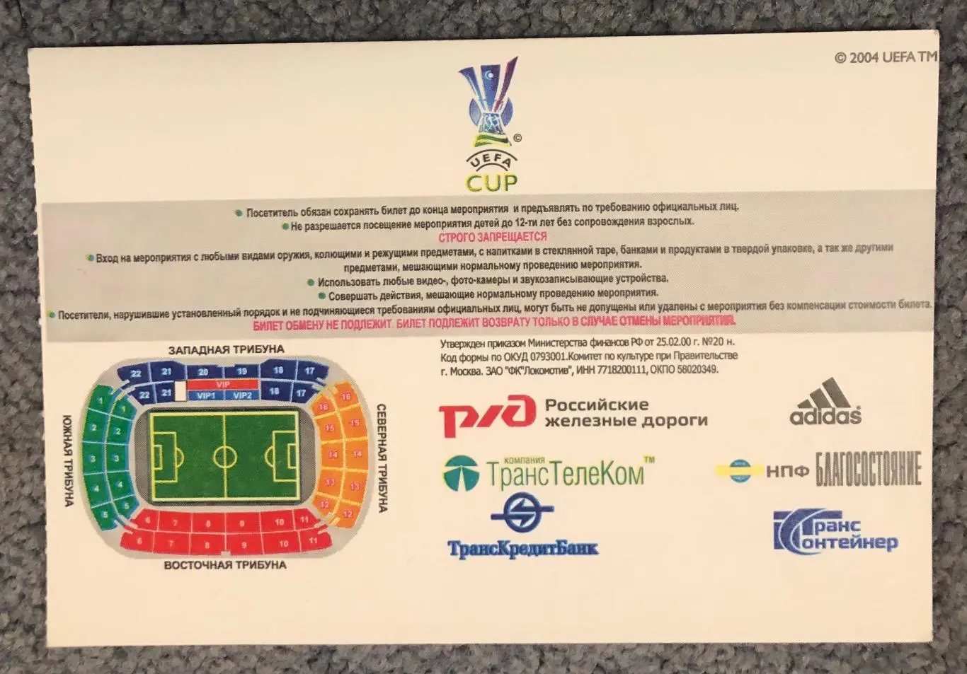 білет Локомотив/Lokomotiv Mos. Rus.-Рома/AS Roma Italy/Італія 2001 match ticket