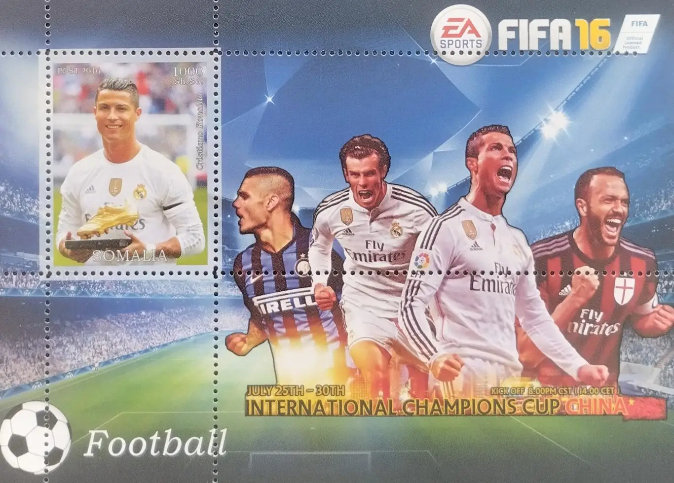 Блок. Сомали 2016. Футбол. Криштиану Роналду.