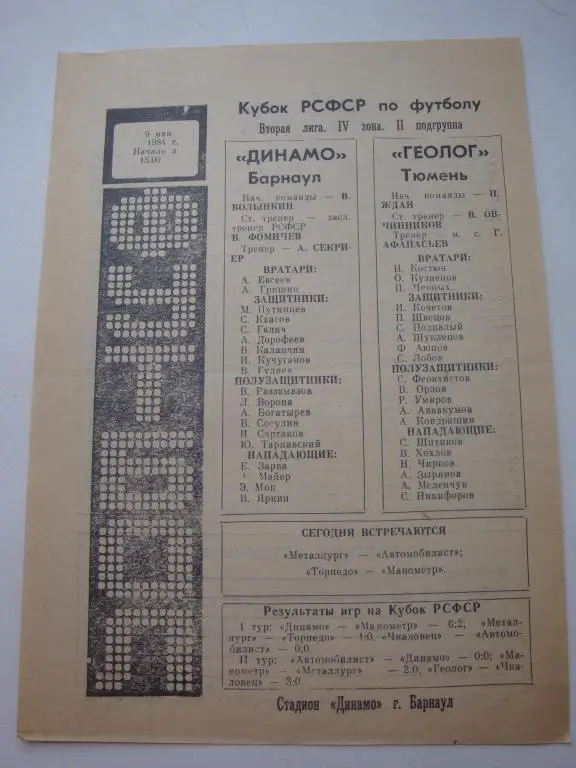 Динамо Барнаул - Геолог Тюмень - 09.05.1984