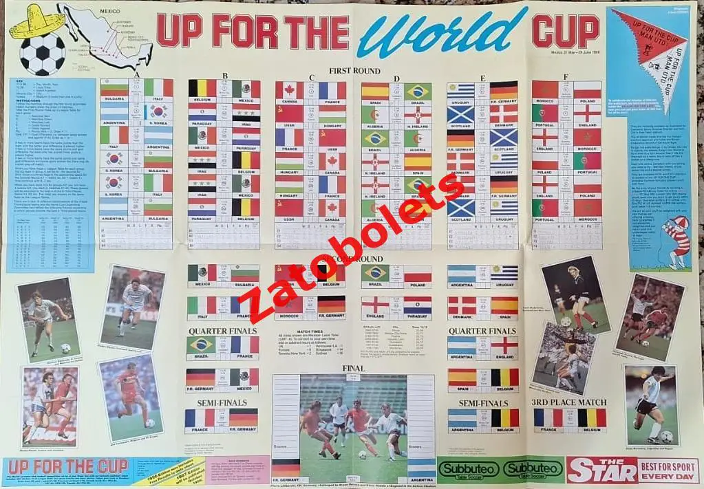 Плакат Чемпионат Мира 1986 Мексика / СССР + фото команд + наклейки