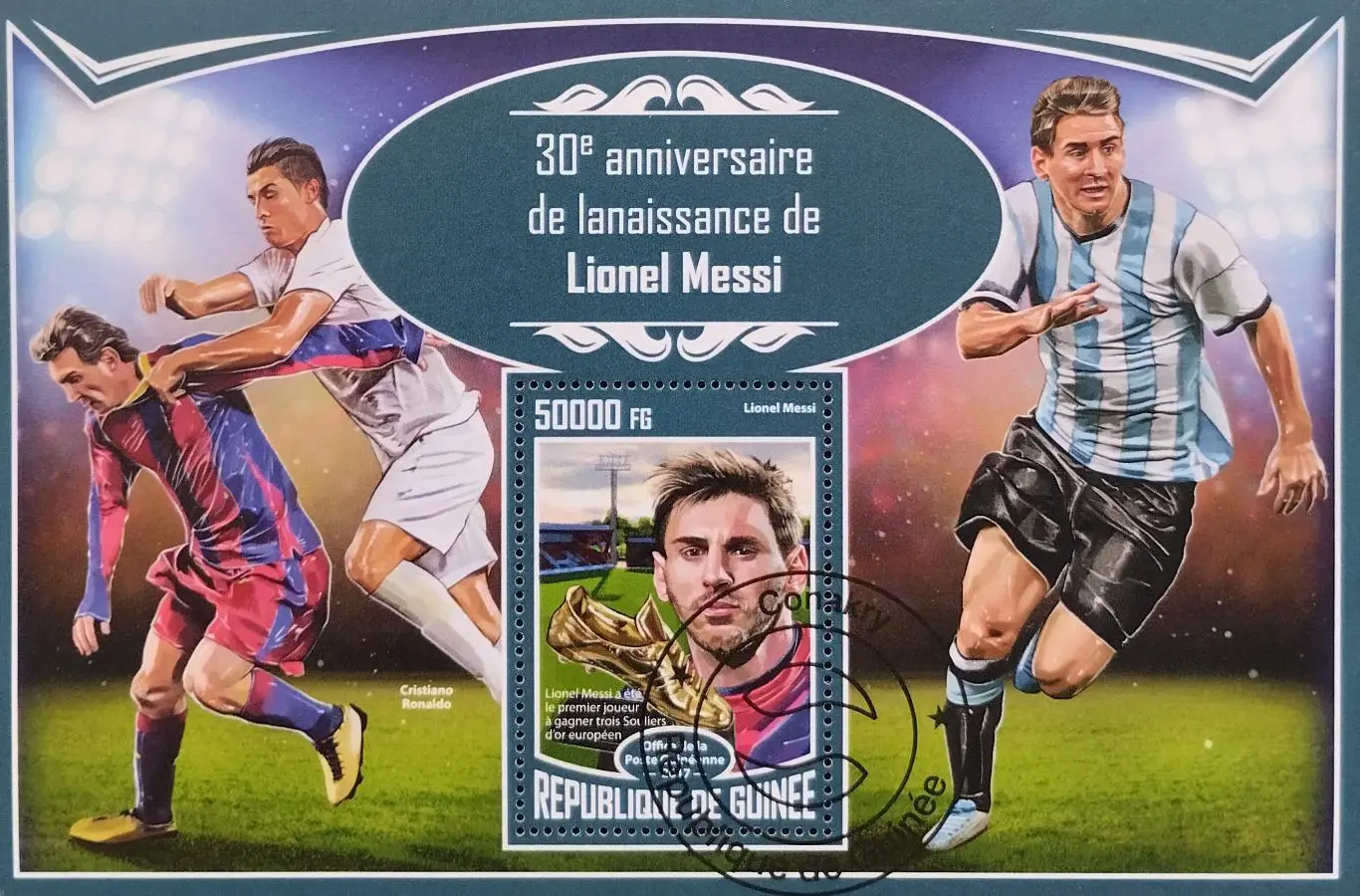 Малый лист. Эритрея 2017. Месси. Марсьяль. Гризманн. Бэйл. Дибала. Погба.