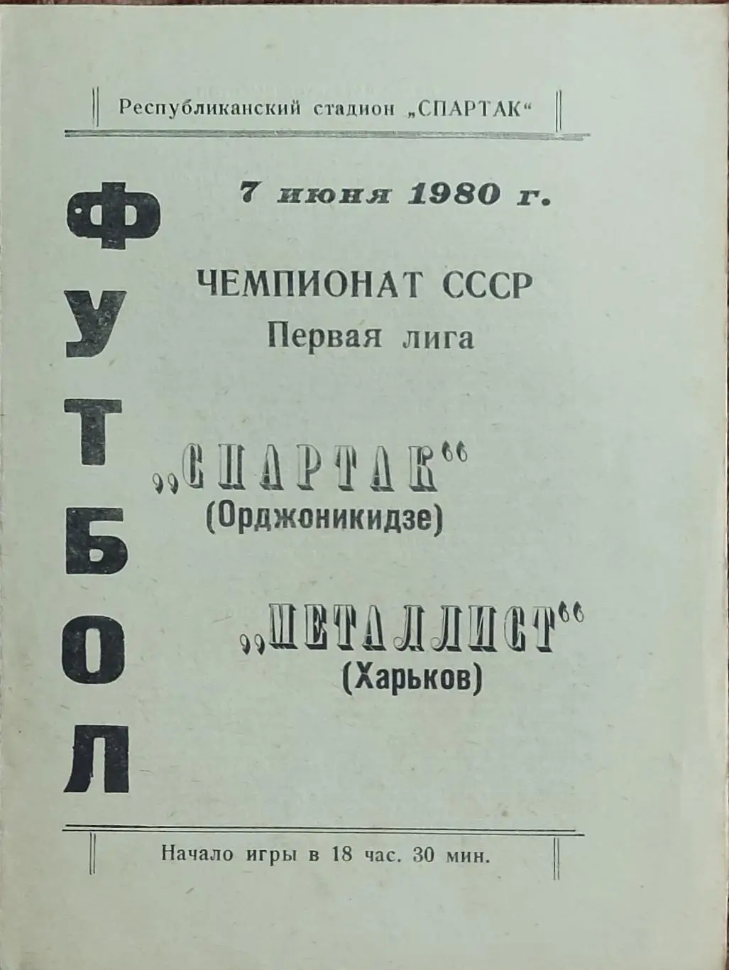 Спартак Орджоникидзе-Металлист Харьков.7.06.1980.