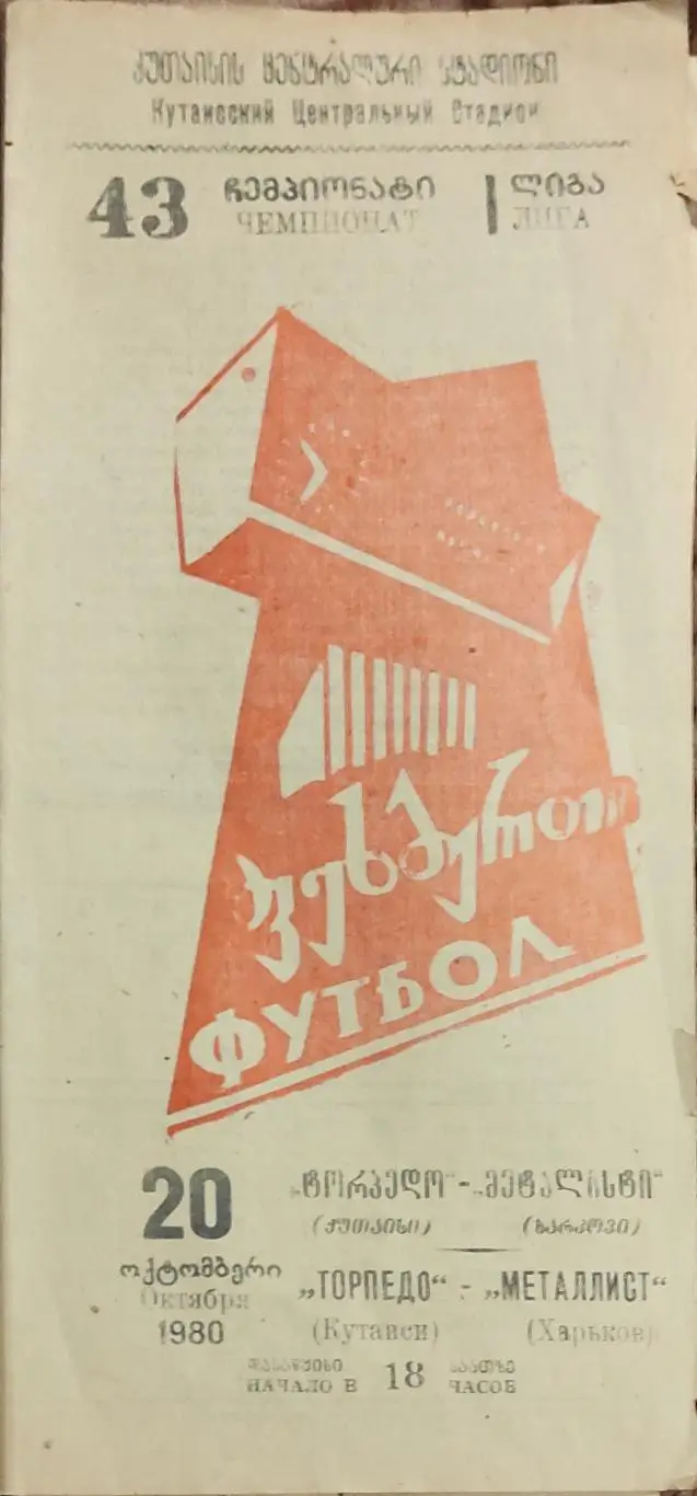 Торпедо Кутаиси-Металлист Харьков.20.10.1980.