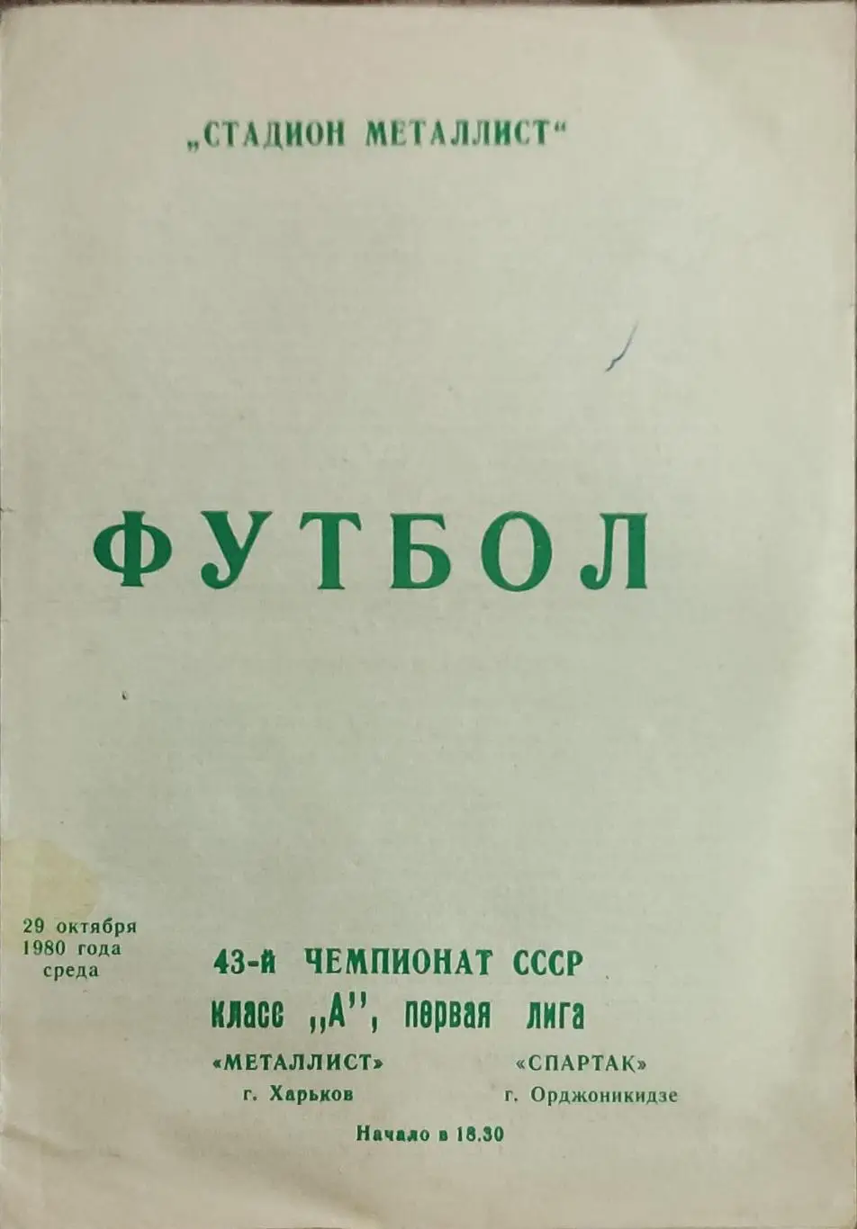 Металлист Харьков-Спартак Орджоникидзе.29.10.1980.