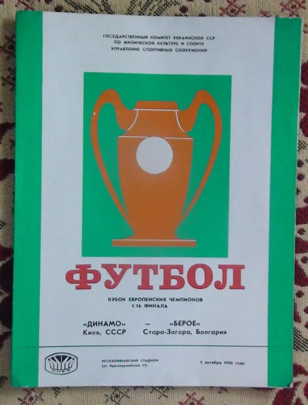 Папка для протоколов (пустая) Динамо Киев - Берое, Болгария 1986