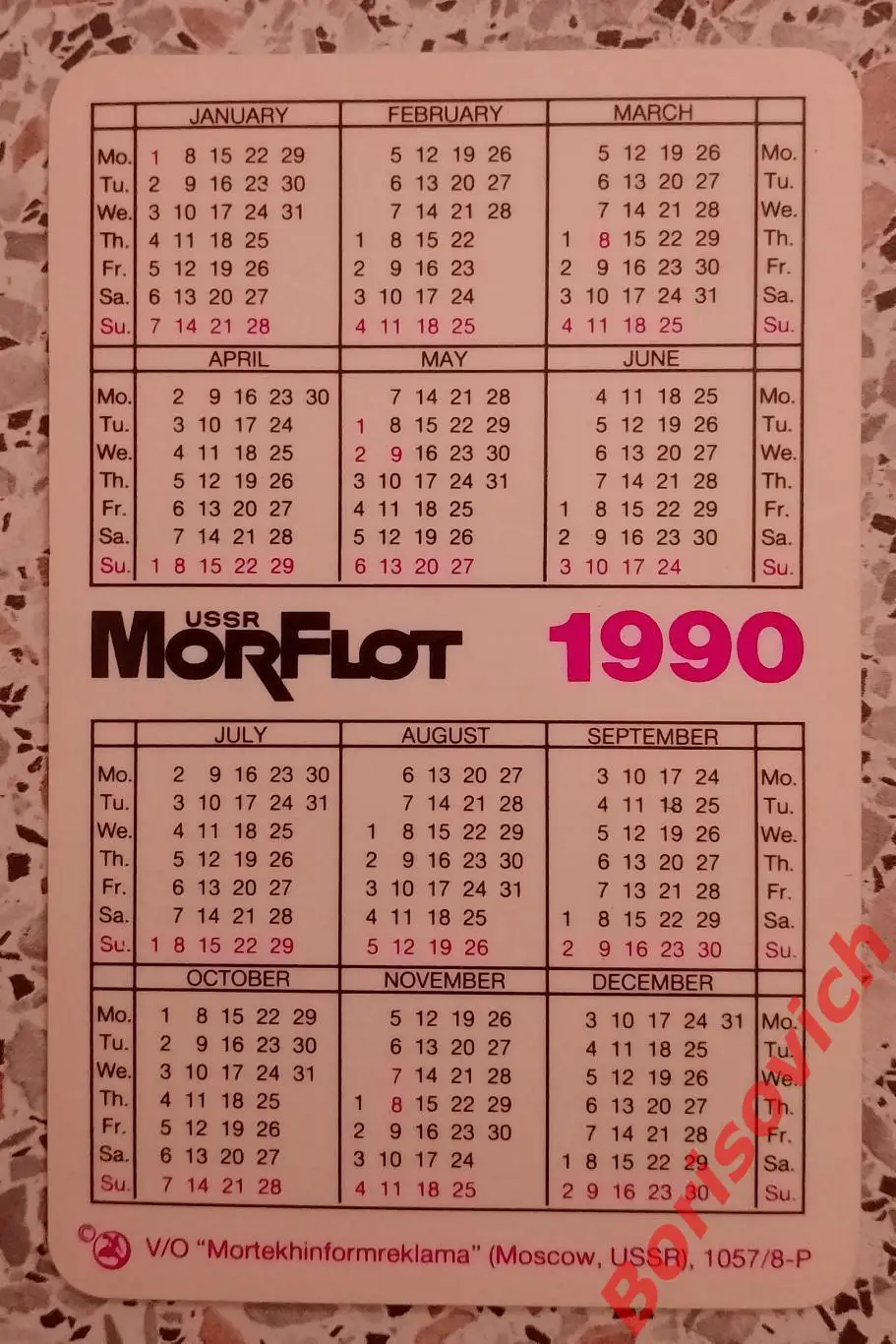 Календарик МОРФЛОТ СССР 1990Календарик МОРФЛОТ СССР 1990 1