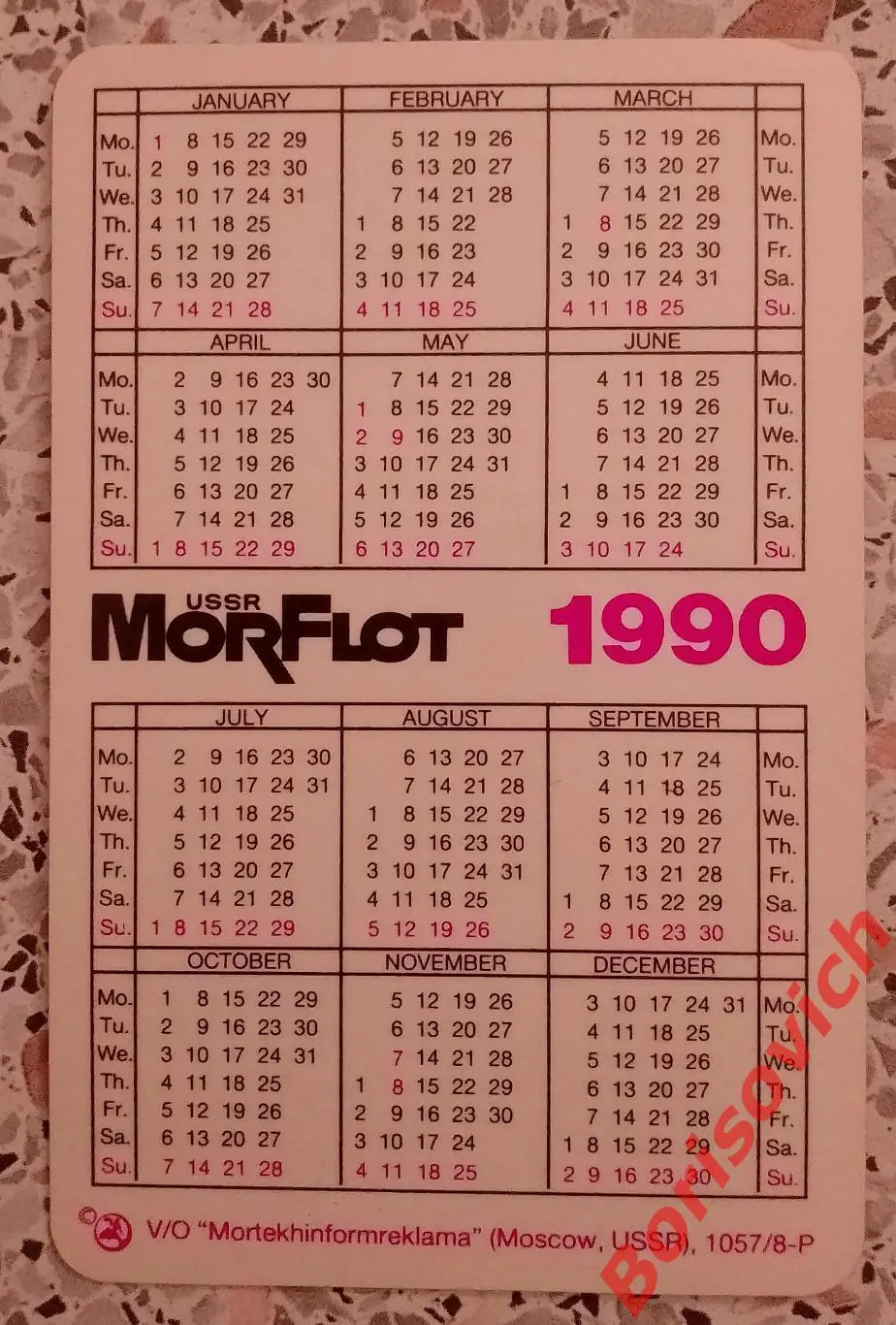 Календарик МОРФЛОТ СССР 1990Календарик МОРФЛОТ СССР 1990 1