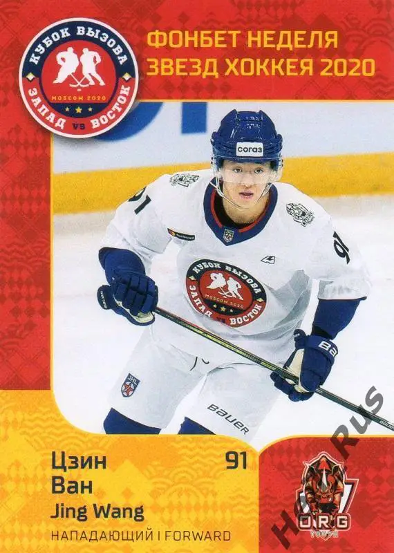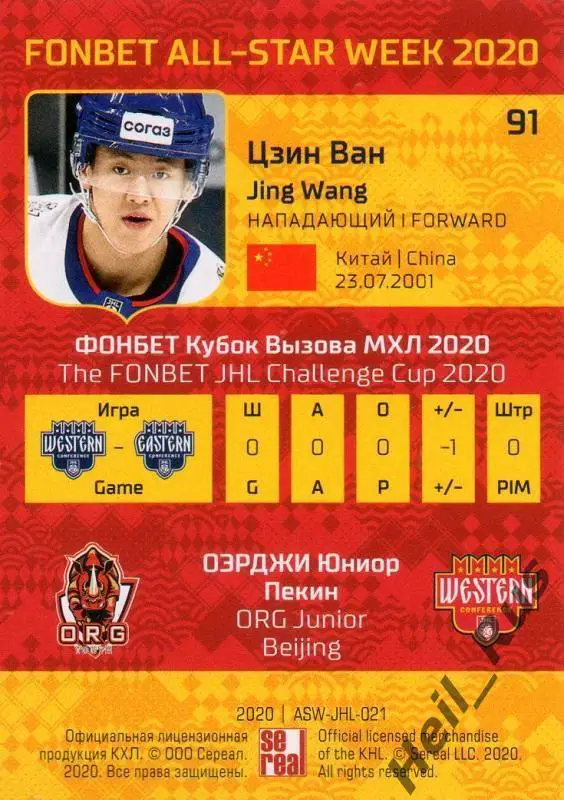 Хоккей. Карточка Цзин Ван (ОЭРДЖИ Юниор Пекин) МХЛ, КХЛ Неделя Звезд Хоккея 2020