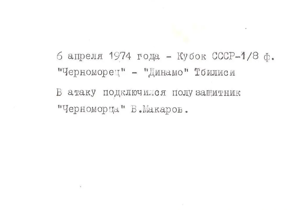 6 апреля 1974 года. "Черноморец" - "Динамо" Тбилиси. Кубок СССР-1/8 финала.