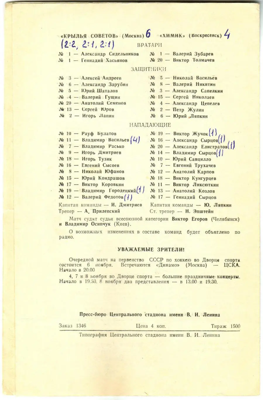 Динамо Москва – СКА Ленинград + Крылья Советов – Химик Воскресенск 03/05.11.1970Динамо Москва – СКА Ленинград + Крылья Советов – Химик Воскресенск 03/05.11.1970 1