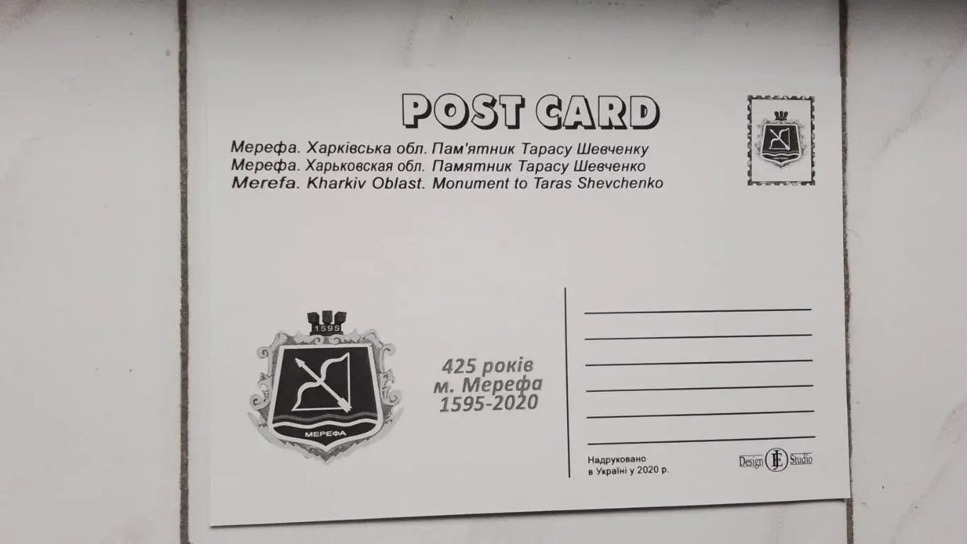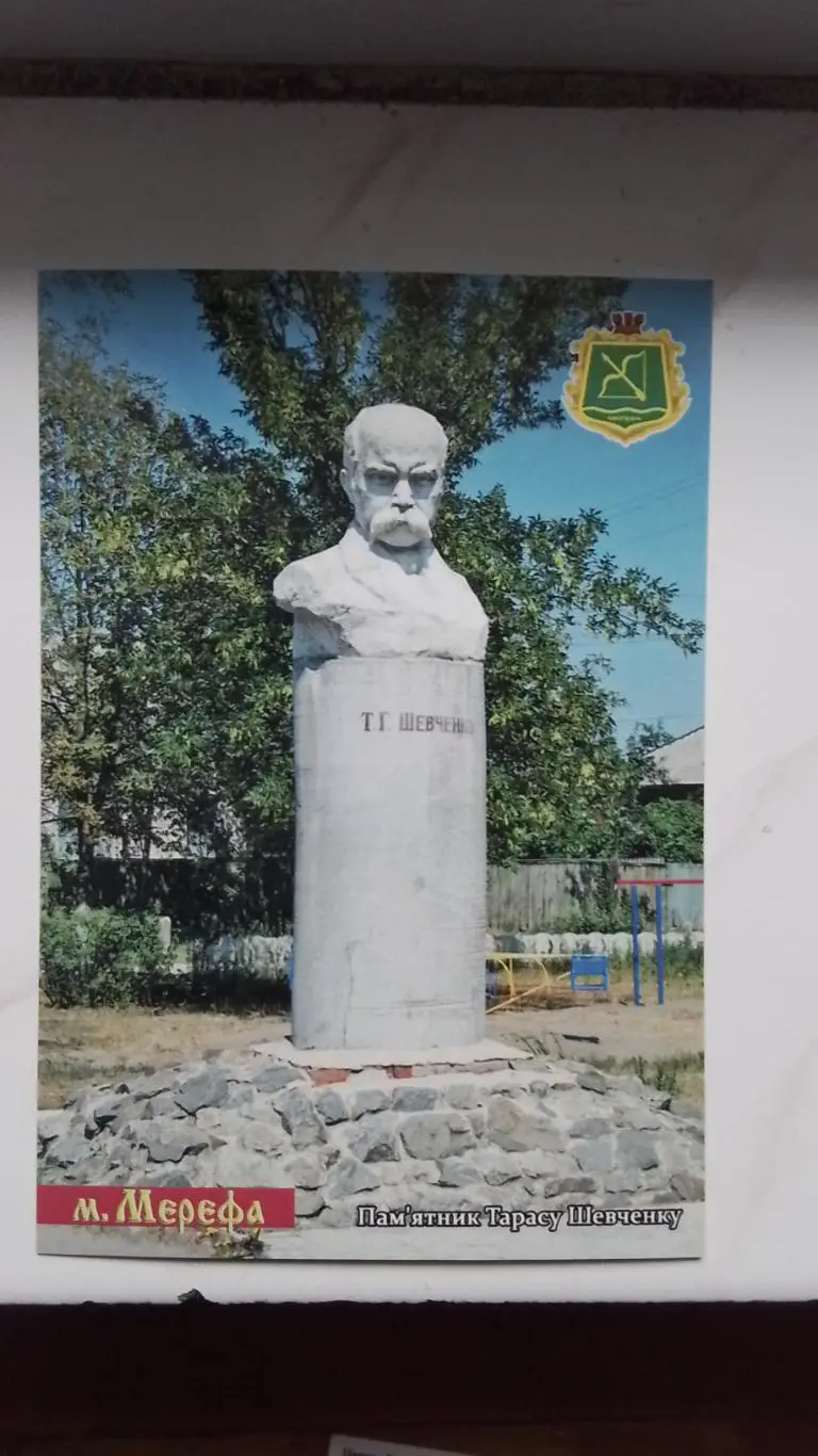 Цветная открытка N 2 из минисерии Городу Мерефе - 425 лет. Харьковская область. Памятник-бюст Т.Г. Шевченко.2020 год выпуска.
