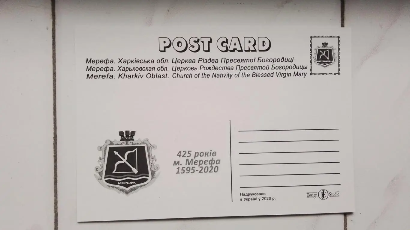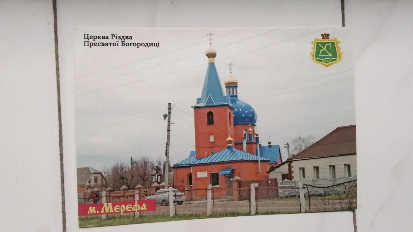 Цветная открытка N 3 из минисерии Городу Мерефе - 425 лет. Харьковская область. Церковь Рождества Пресвятой Богородицы.2020 год выпуска.
