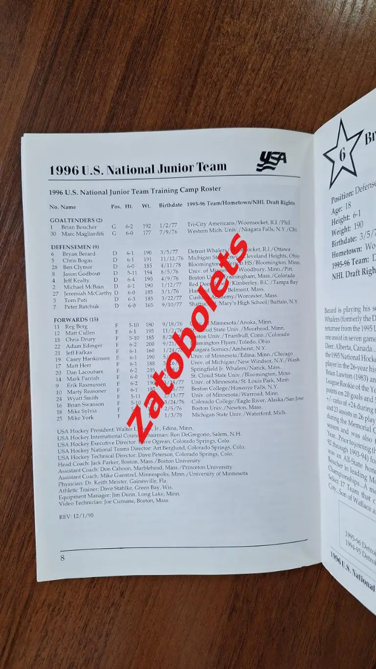 Хоккей Чемпионат Мира США 1996 Молодежные Россия Украина Media Guide сборной США