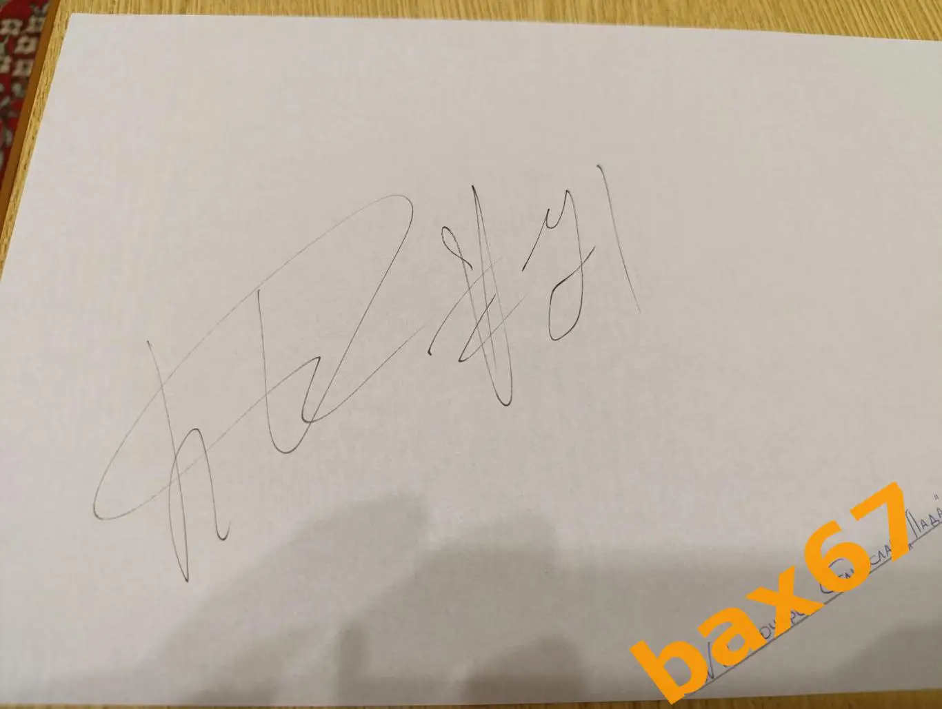 Состояние на скане. Автограф на листе формата А4
