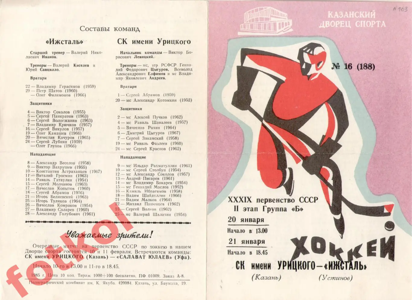 СК им. УРИЦКОГО Казань - ИЖСТАЛЬ Ижевск 21.01.1985