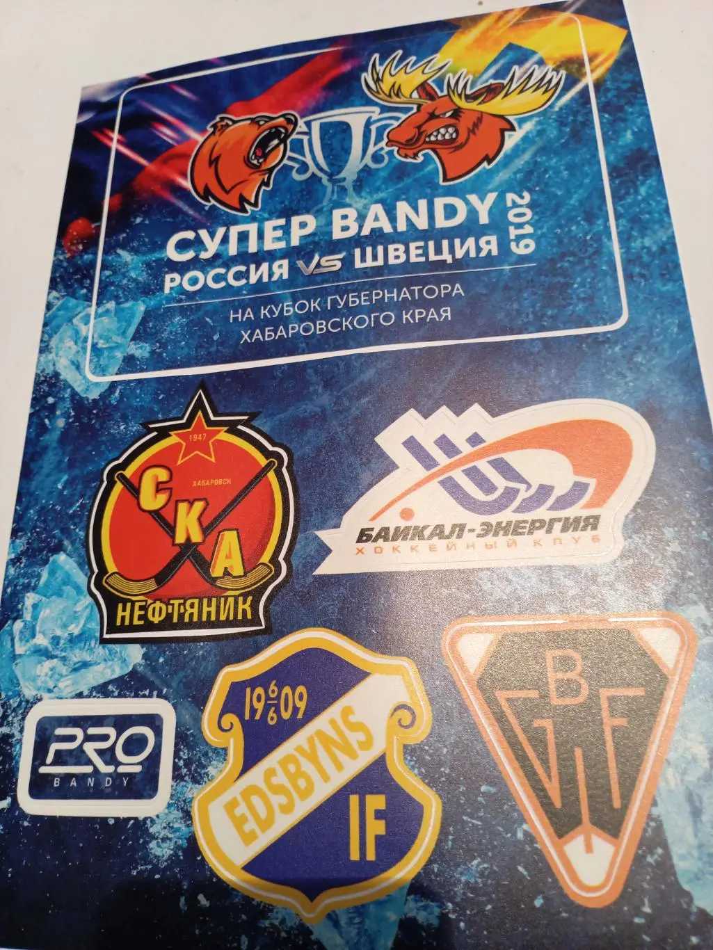 Хабаровск Международный турнир Super Bandy - 2019 (набор наклеек 6 шт) лист А-4