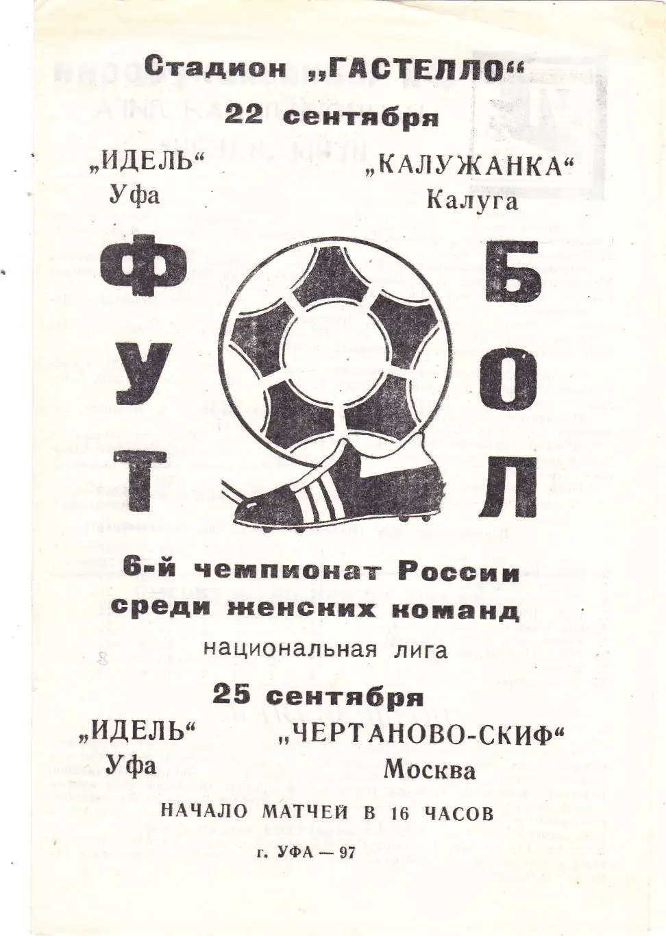 Идель (Уфа) - Калужанка (Калуга)/Чертаново-СКИФ (Москва) 22,25.09.1997