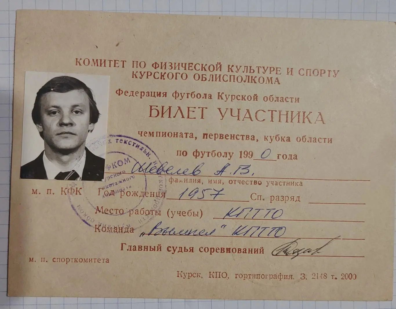 Билет участника чемпионата, первенства, кубка области по футболу 1990 #1