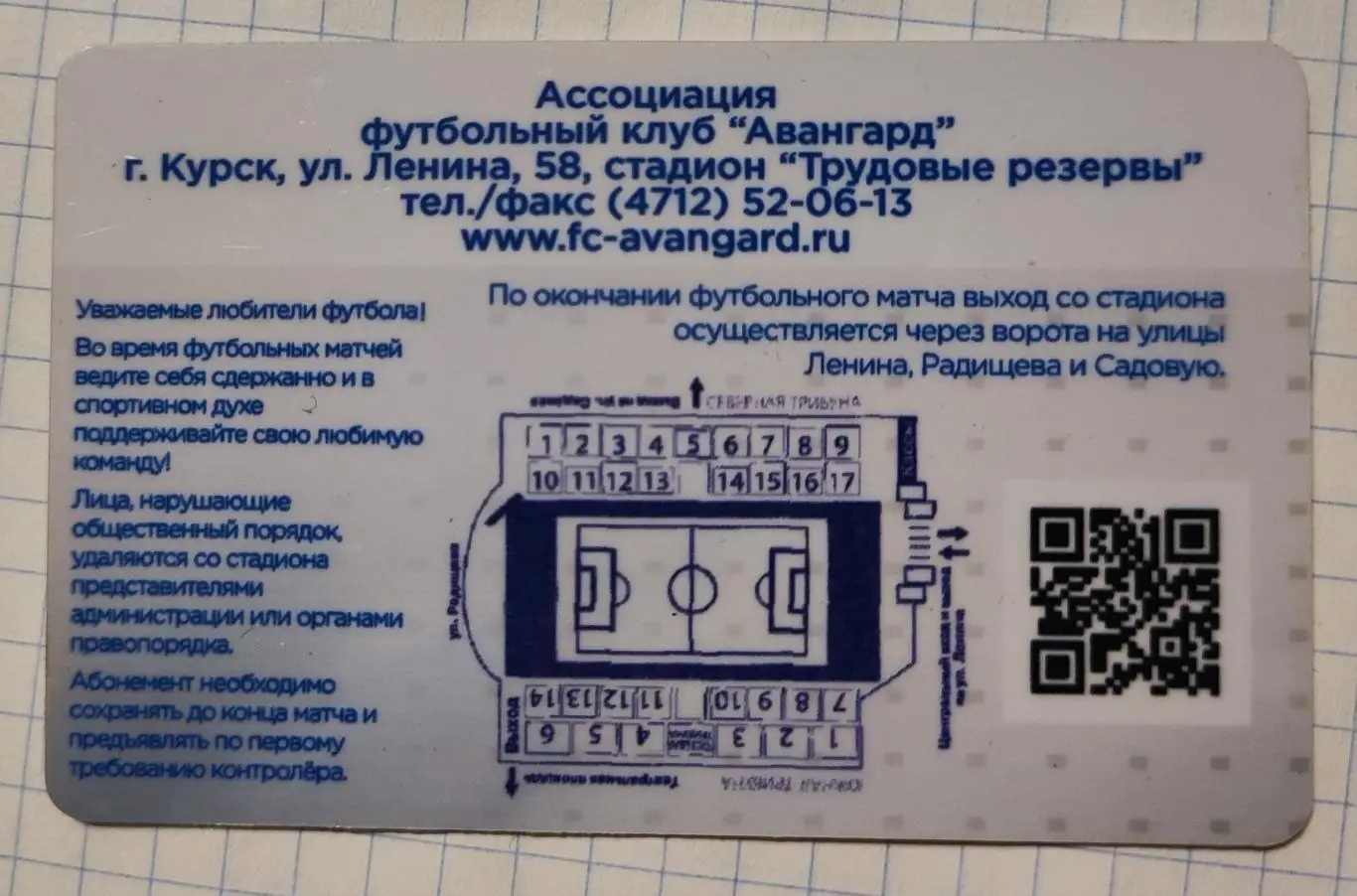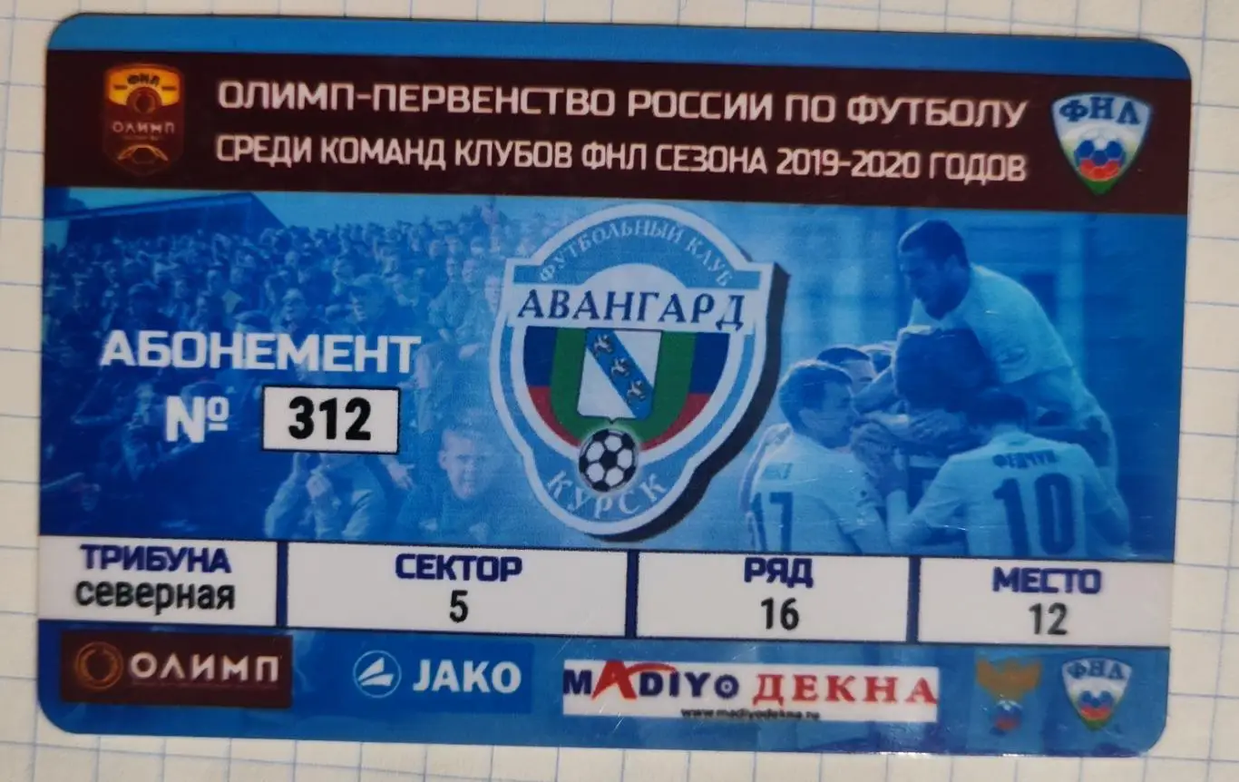Абонемент Первенство России по футболу среди команд клубов ФНЛ сезона 2019-2020, Авангард Курск, пластик