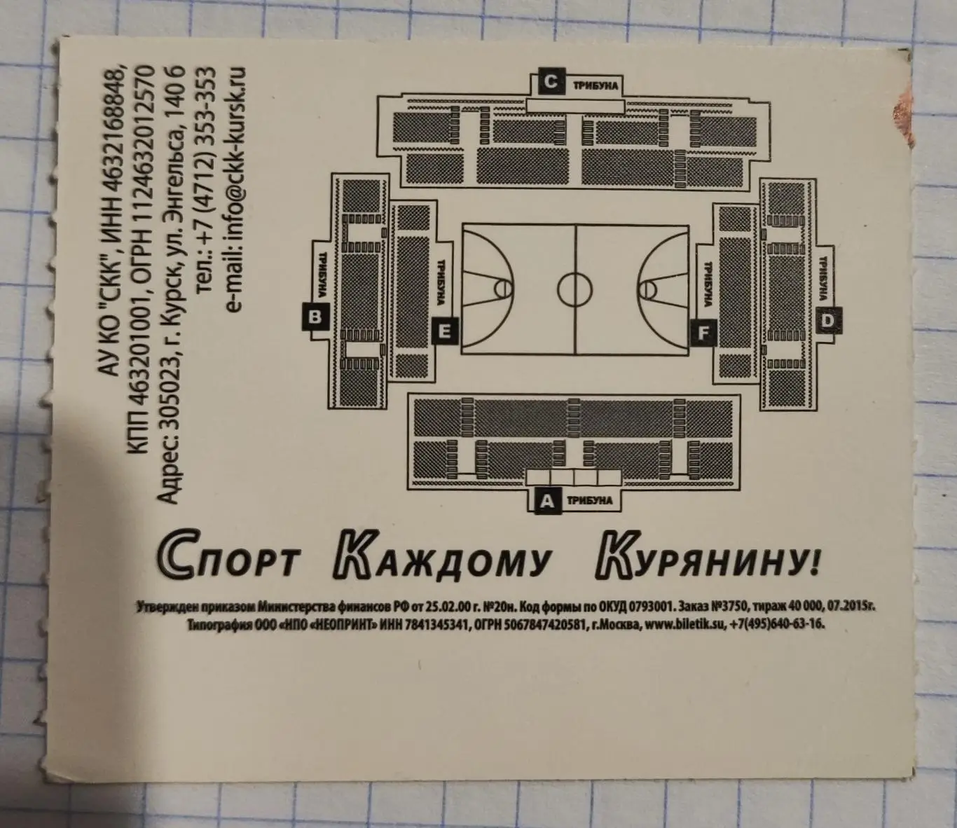 Билет на матч Динамо Курск 2016 , Россия- ФранцияБилет на матч Динамо Курск 2016 , Россия- Франция 1