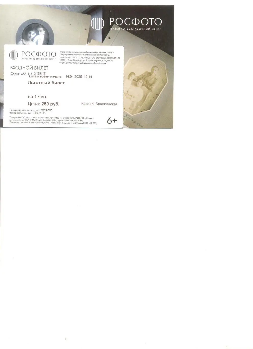 Билет в музей РОСФОТО в Санкт-Петербурге.