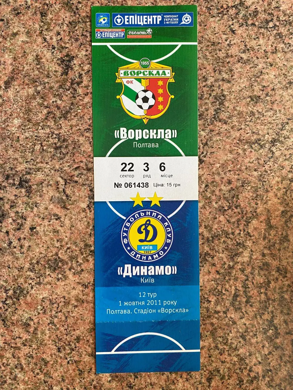 Білет. Ворскла Полтава- Динамо Київ. 01.10.2011.#.м.