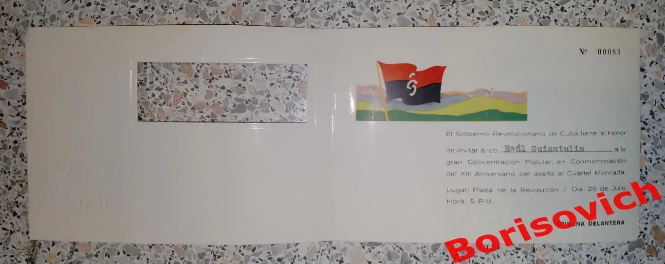 Состояние на фото. Правительство революционной Кубы имеет честь пригласить на народное собрание в ознаменование 13 - й годовщины штурма казарм Монкада. 1953 - 1966.
