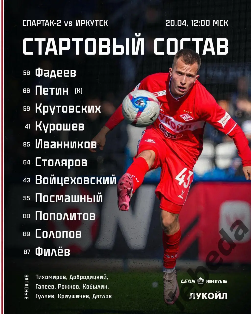 Спартак-2 Москва - ФК Иркутск - 2024 / 2025 г. (20.04.25.)Спартак-2 Москва - ФК Иркутск - 2024 / 2025 г. (20.04.25.) 1Спартак-2 Москва - ФК Иркутск - 2024 / 2025 г. (20.04.25.) 2Спартак-2 Москва - ФК Иркутск - 2024 / 2025 г. (20.04.25.) 3