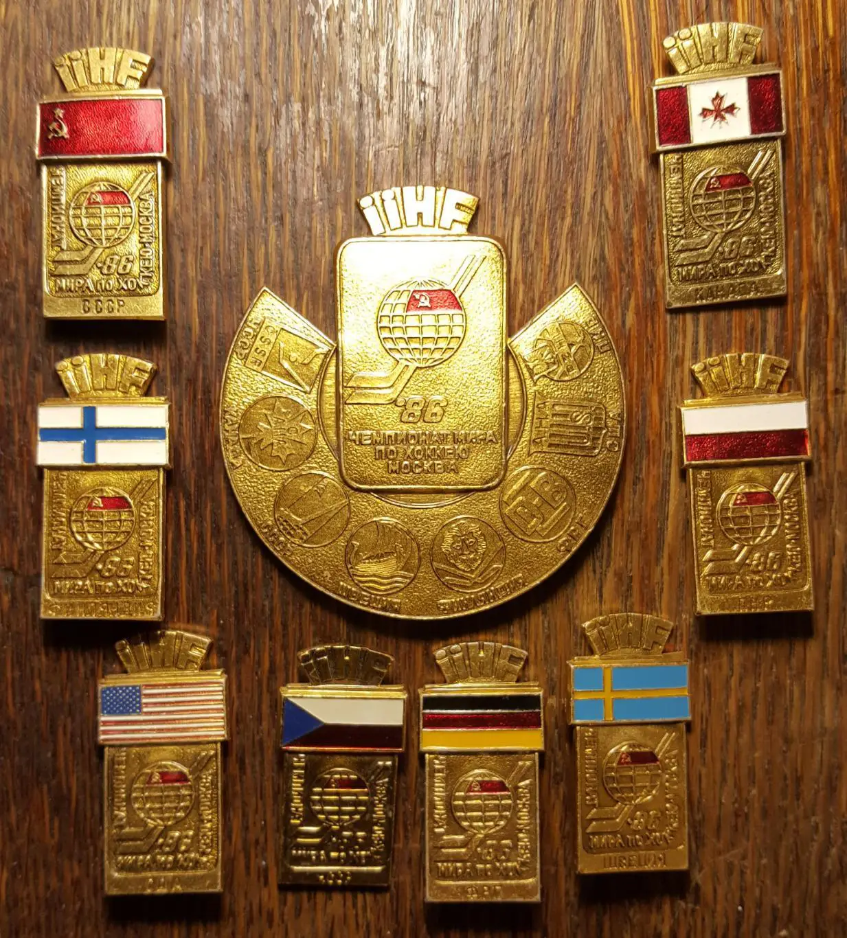 Значки"Чемпионат мира по хоккею Москва 86 набор Редкий.