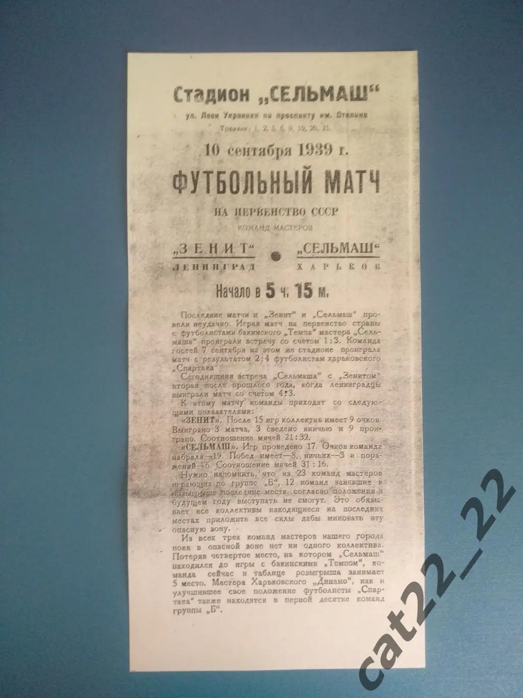 Сельмаш Харьков - Зенит Ленинград/Санкт-Петербург СССР/Россия 10.09.1939