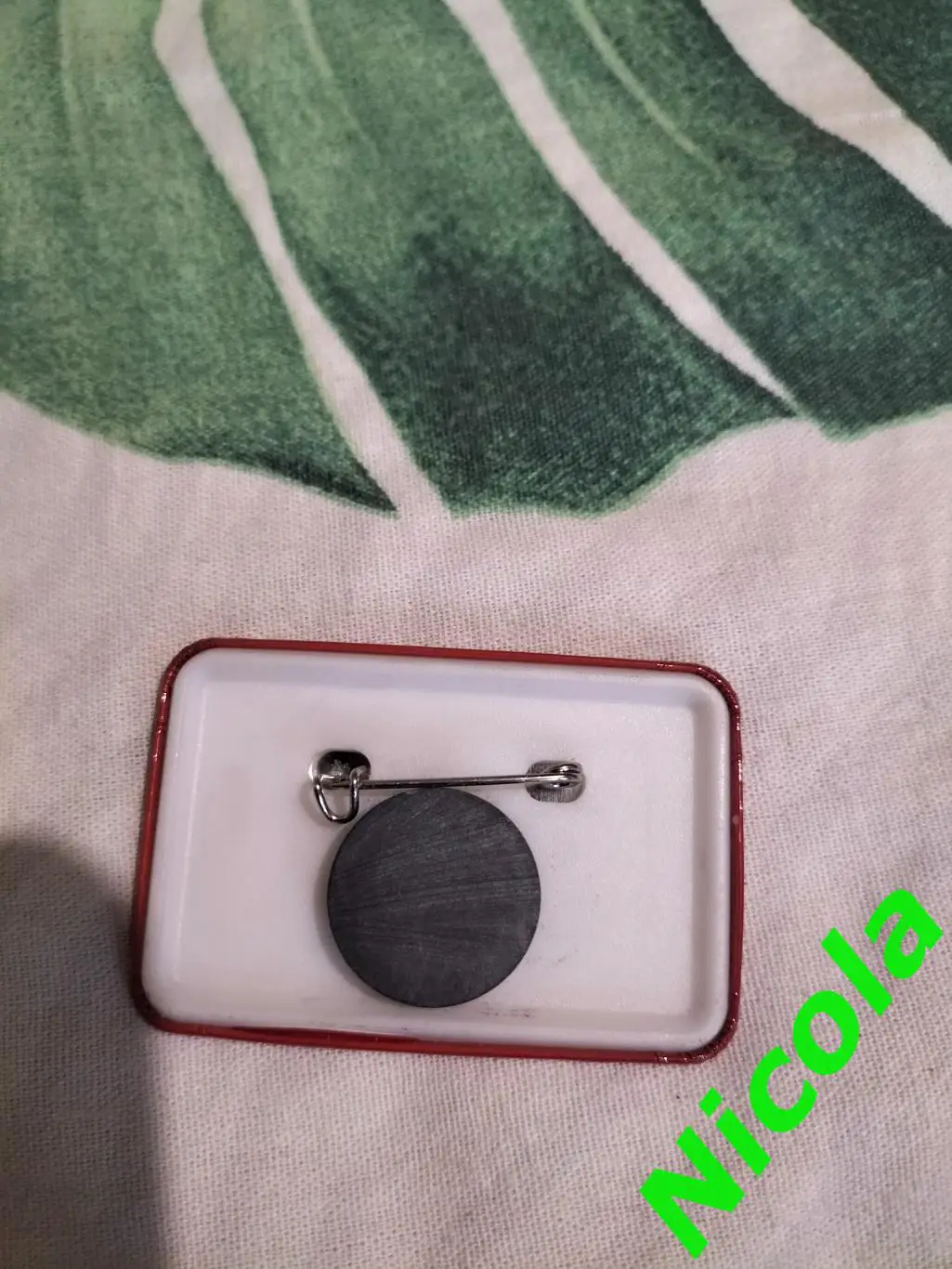 Со тояние отличное.Размер 3,5*5,5см,на булавке +магнит.Все  вопросы до покупки.