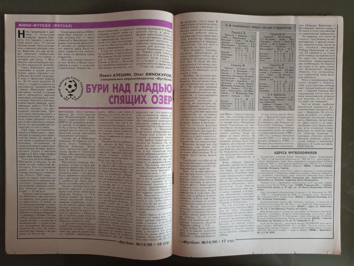 Еженедельник Футбол Украинское издание№14 (1887) 1996 год