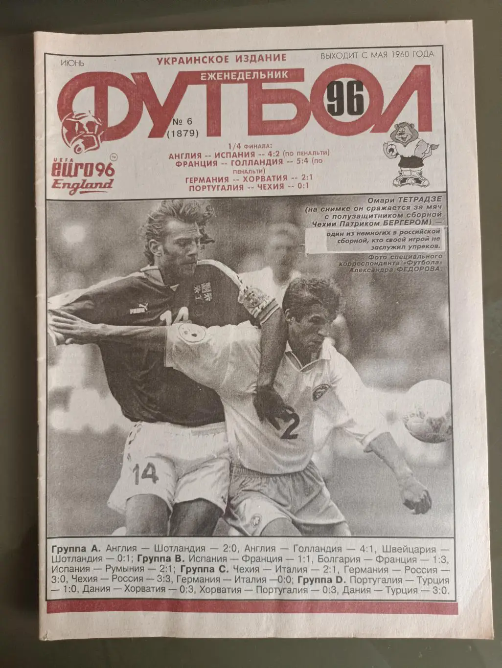 Еженедельник Футбол Украинское издание №6 (1879) 1996 год