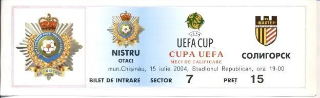 білет Ністру/Nistru Moldova/Молд- Шахтер/Sh.Soligorsk Belarus 2004b match ticket